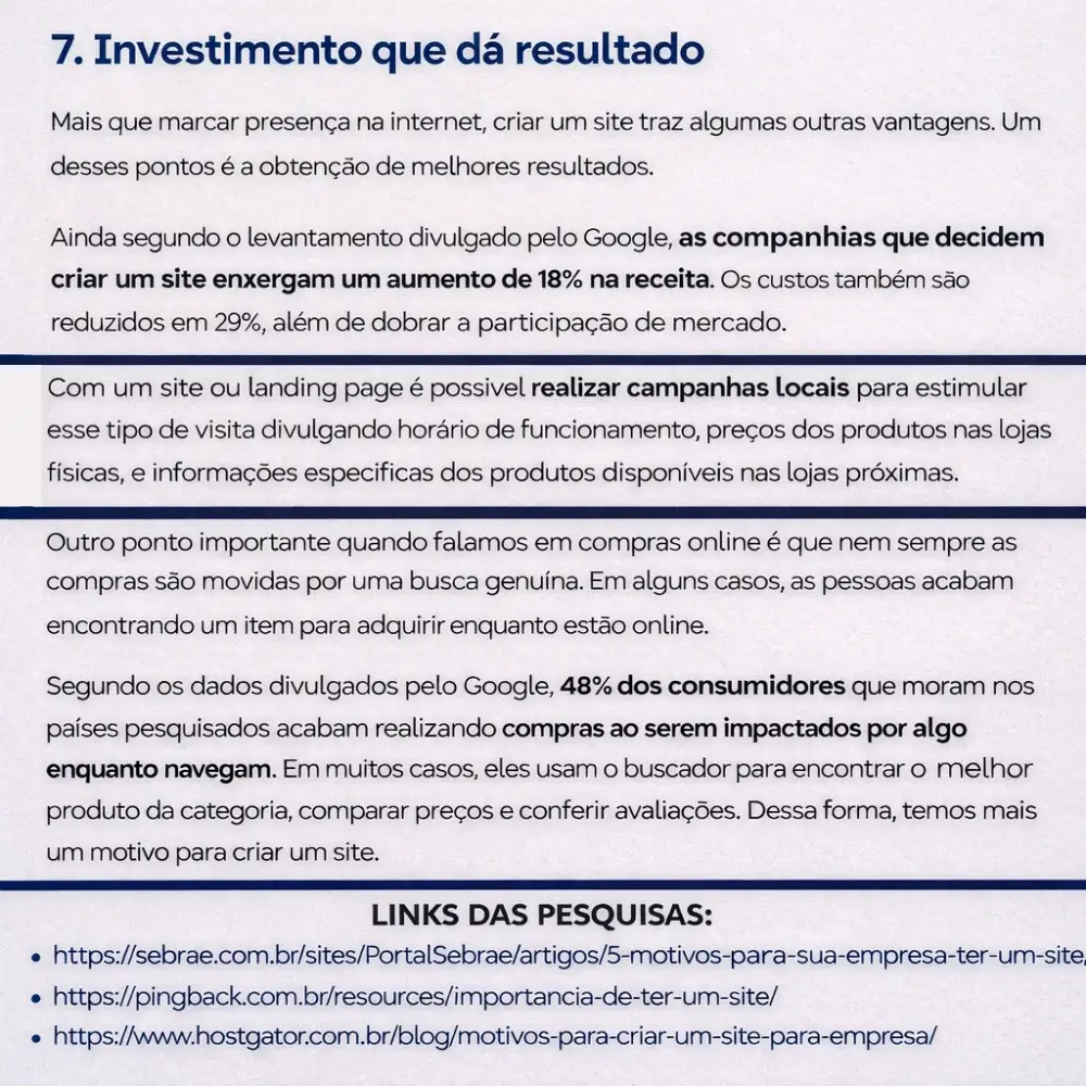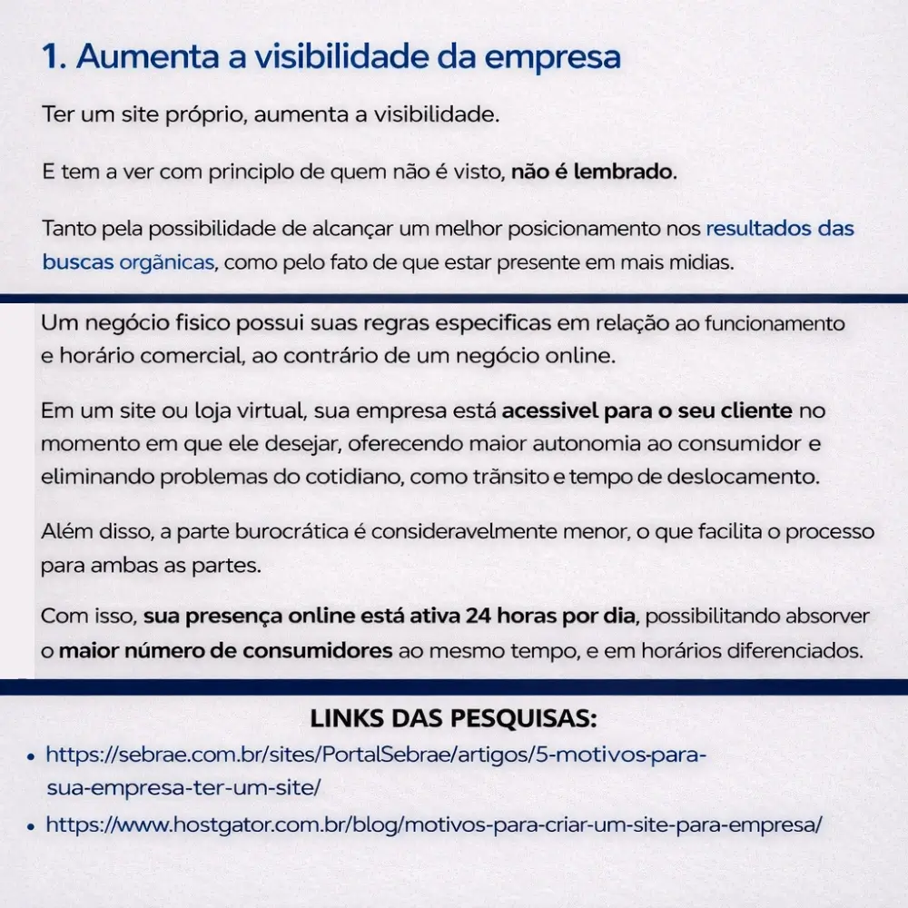 Um site profissional aumenta a confiança do cliente e facilita a decisão de compra, gerando mais conversões.